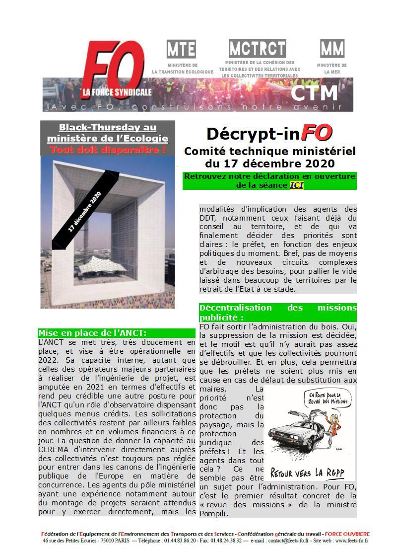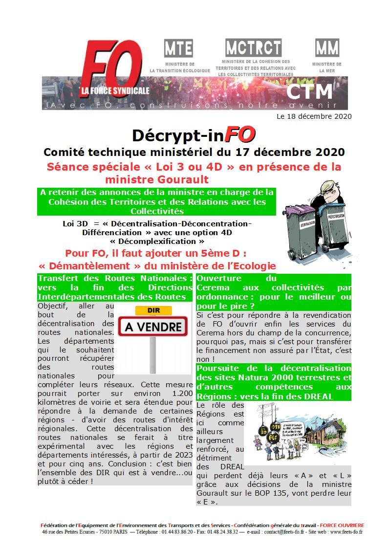 Le jeudi 17 décembre 2020, se tenaient 2 CTM pour le prix d’un, avec un fil conducteur: l’enchainement et la conjonction des réformes touchant notre pôle ministériel (SGC en outre mer, mutualisation dans les Agences de l’Eau, avenir des DREAL, transfert des missions publicité en DDT) et le point d’orgue au travers de la présentation du projet de loi 3D par la ministre Gourault.
