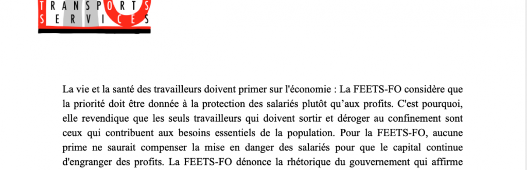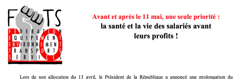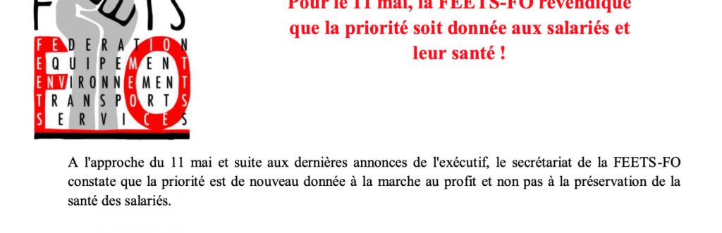 Pour le 11 mai, la FEETS-FO revendique que la priorité soit donnée aux salariés et leur santé !