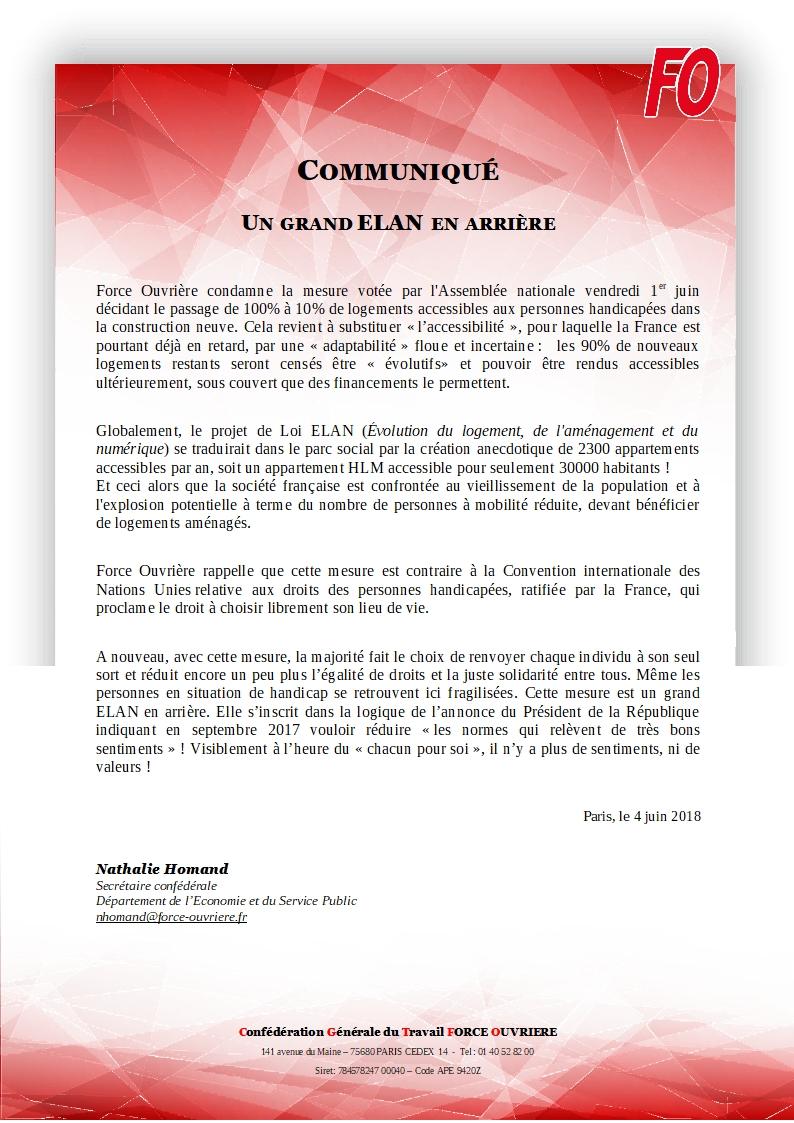 Avec un nouvel exemple dans le domaine de l’accessibilité. Retrouvez ci-dessous le communiqué de FO relatif au projet de loi ELAN.