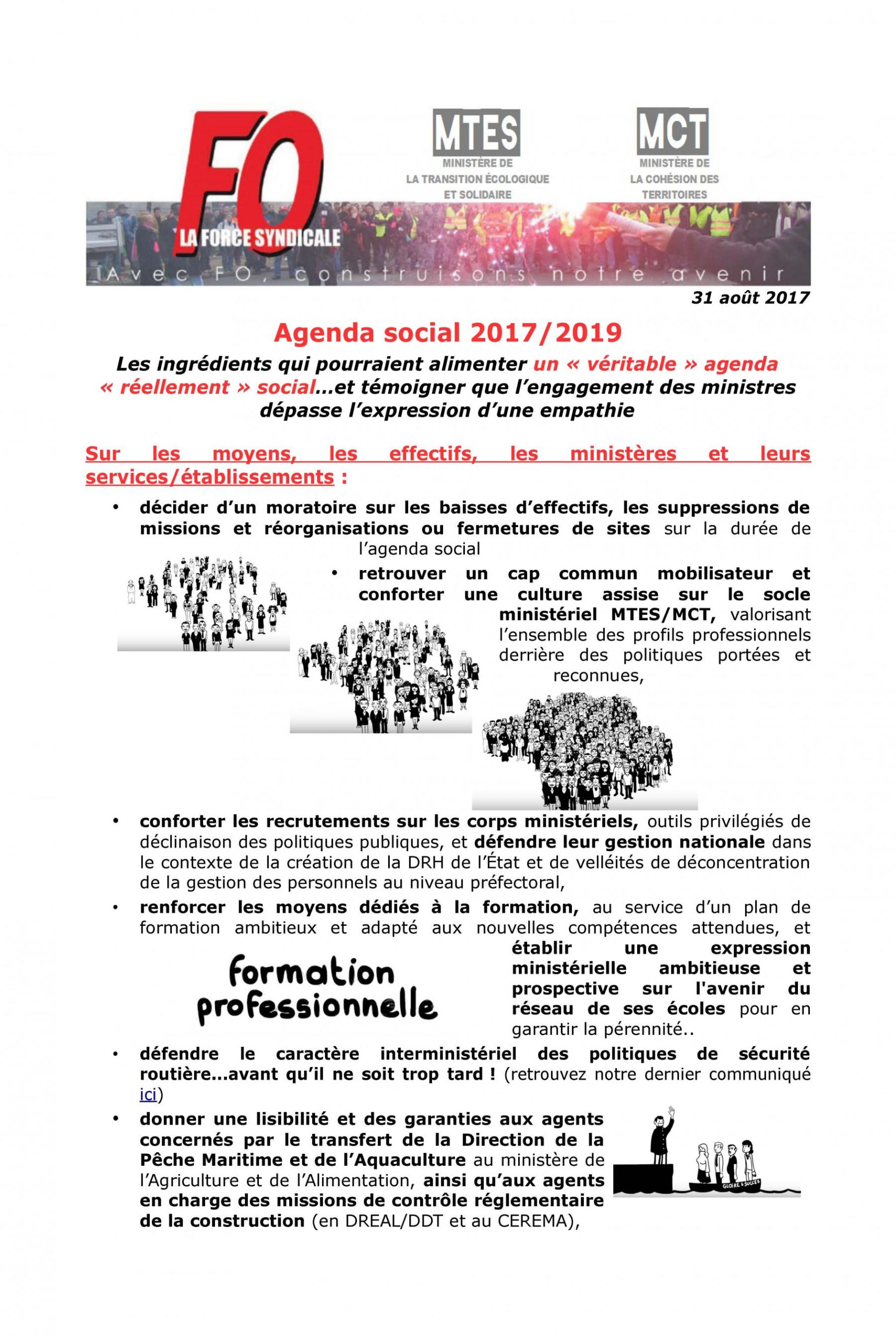 Retrouvez ci-après la liste des ingrédients (remis à la SG) qui pourraient alimenter un « véritable » agenda « réellement » social, et témoigner que l’engagement des ministres dépasse l’expression d’une empathie.