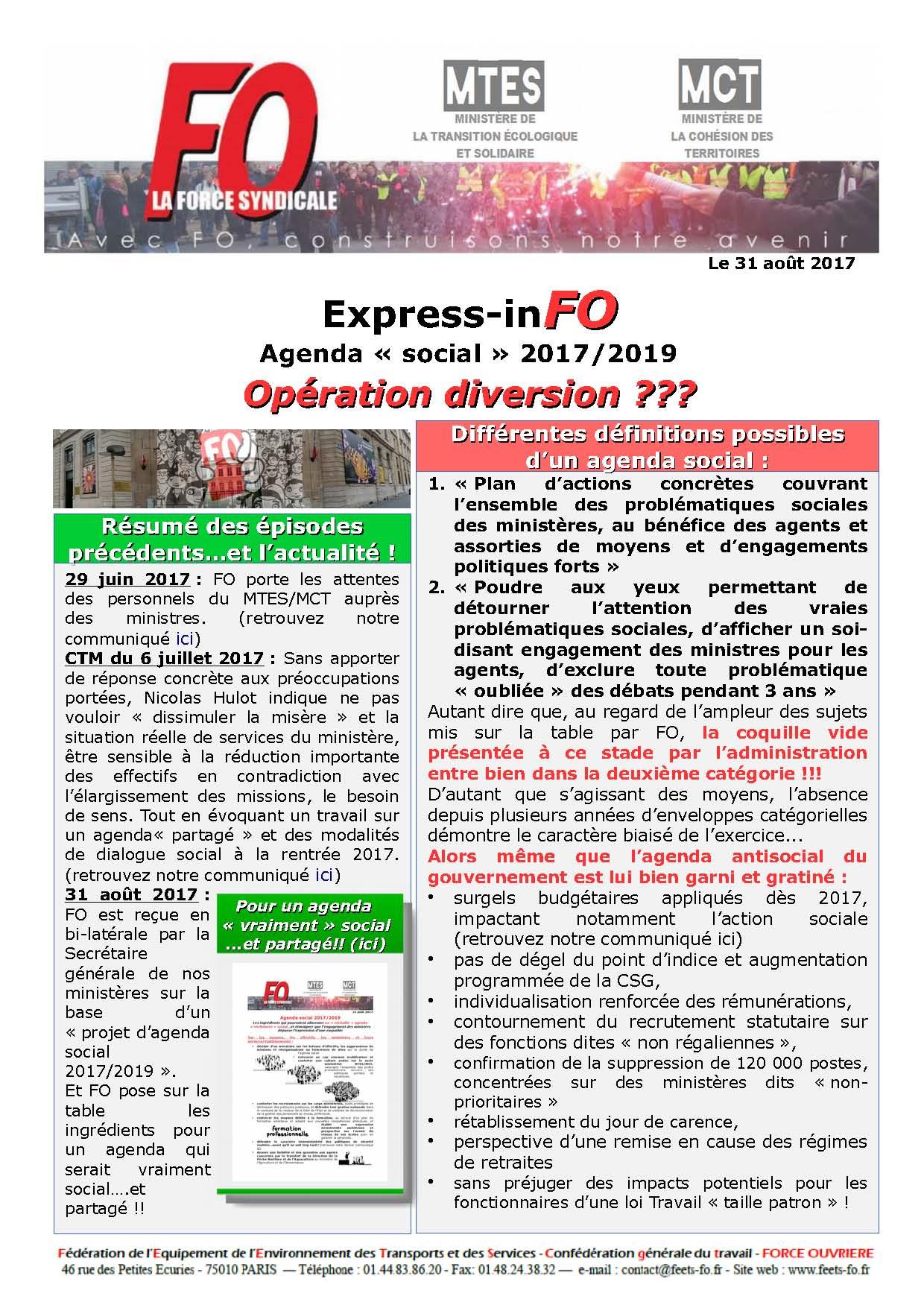 FO était reçue ce jour par la Secrétaire générale de nos ministères sur la base d’un « projet d’agenda social 2017/2019 » (dont les grandes lignes sont à retrouver dans notre Express-inFO).
