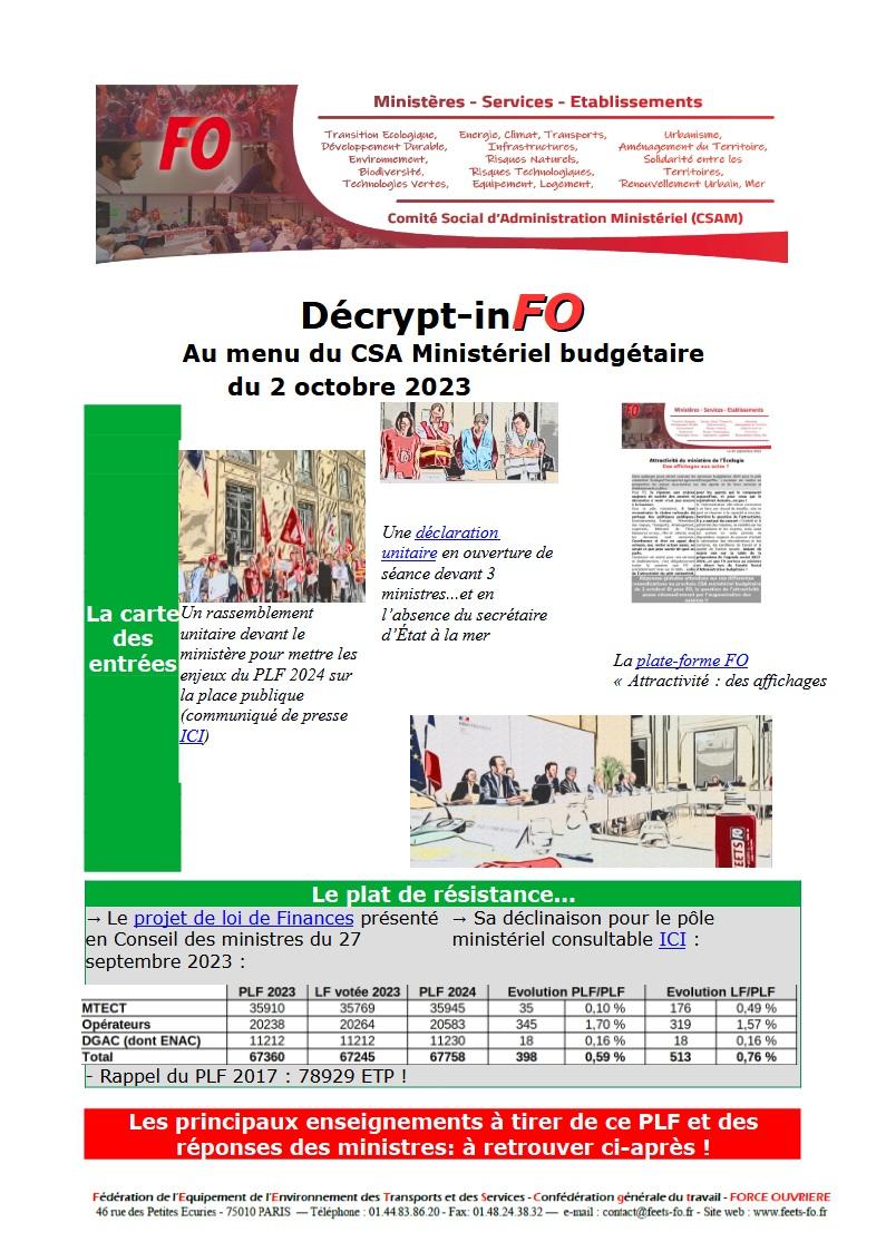 Pour en savoir plus : FO organise un webinaire de décryptage du PLF 2024 mercredi 4 octobre midi ! (inscriptions ICI)