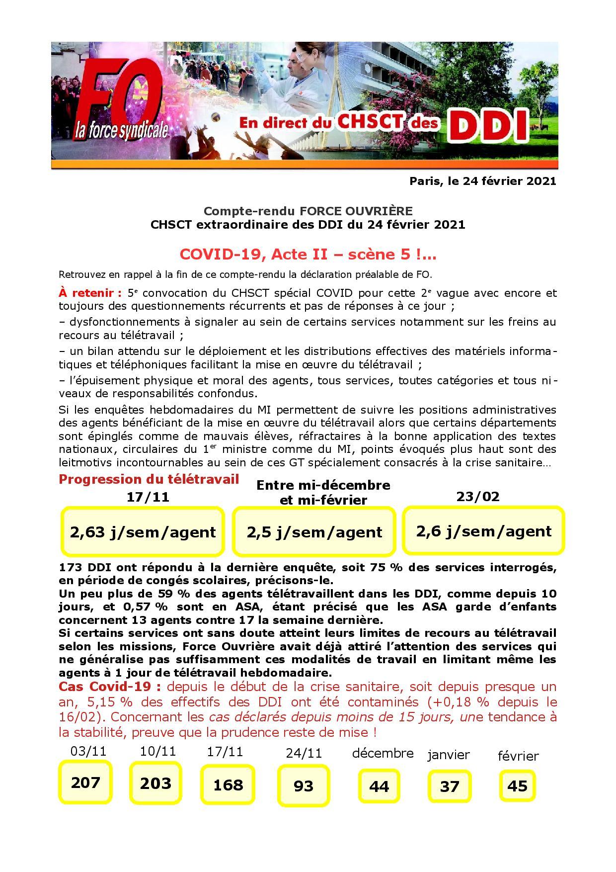 Vous trouverez ci-après le compte-rendu du CHSCT des DDI du 22 février 2021.