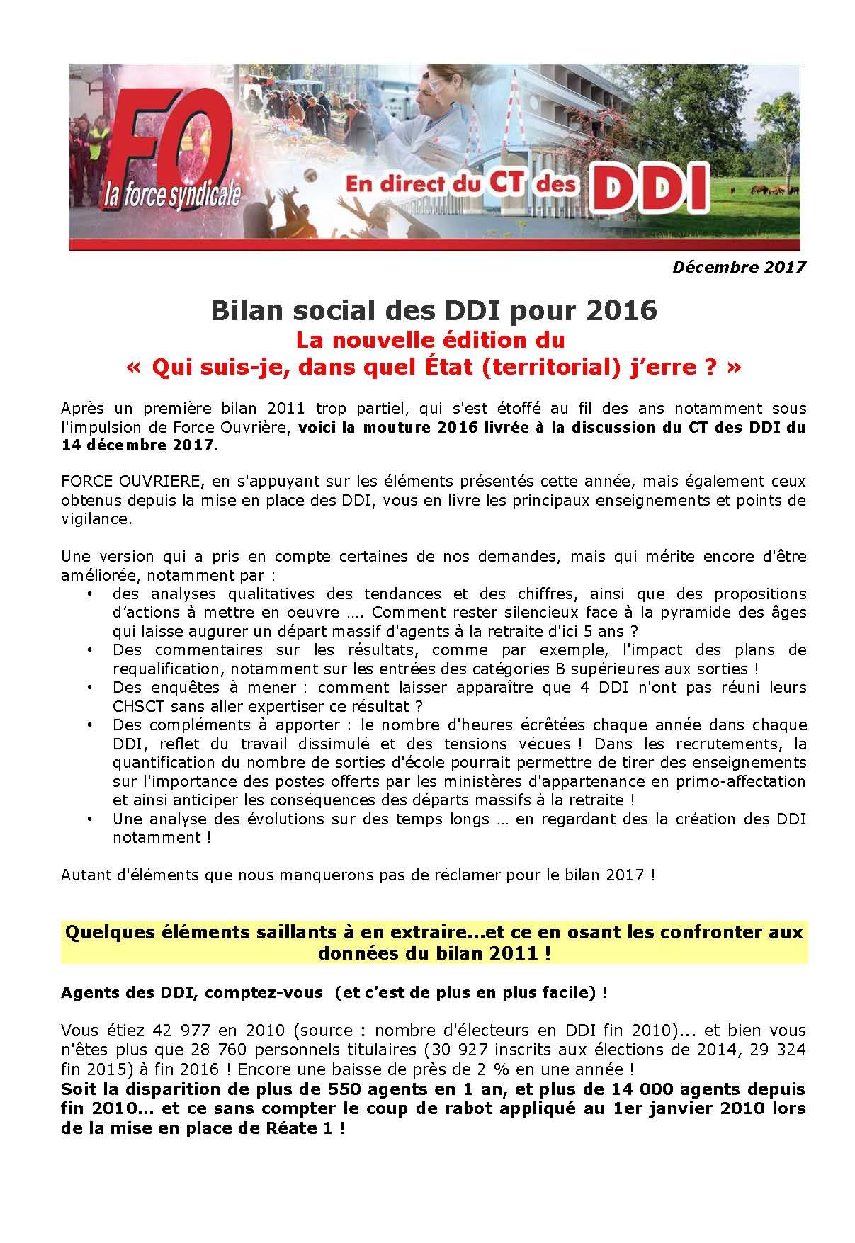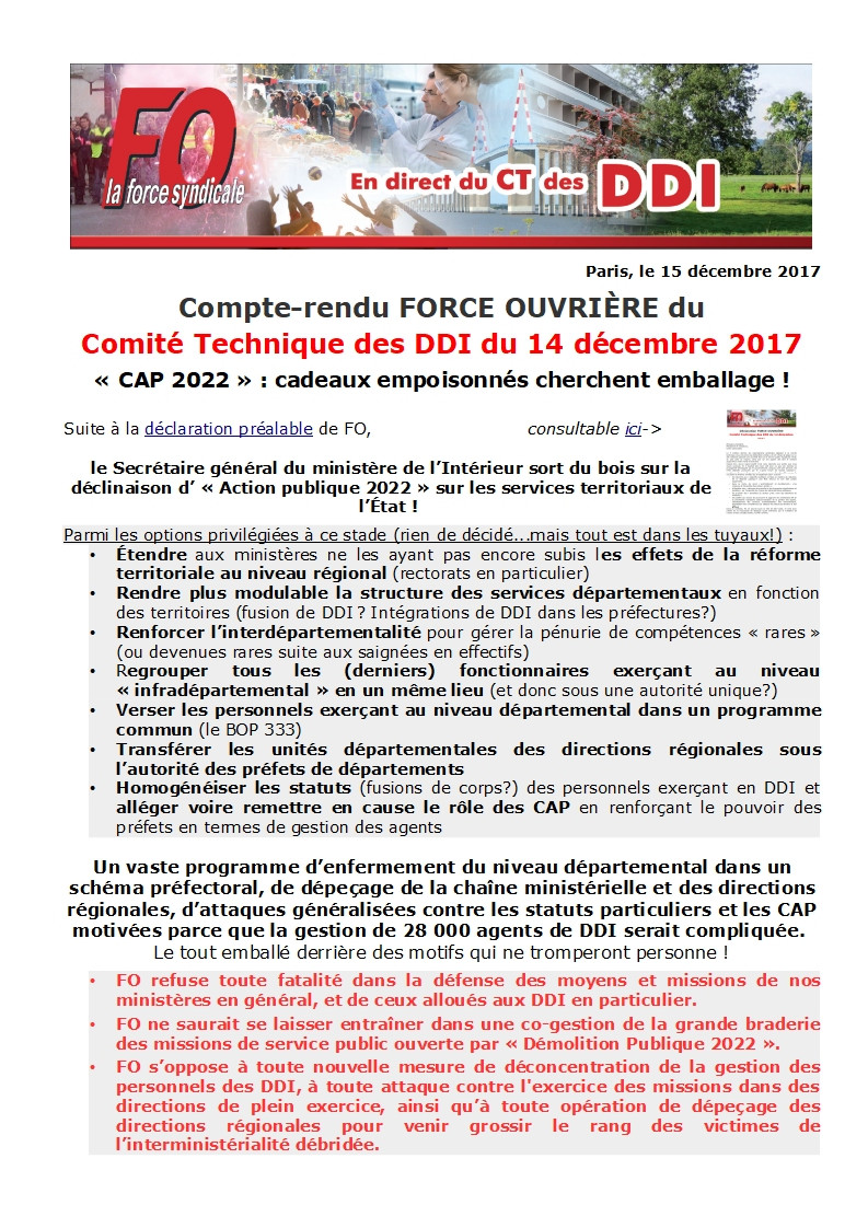 Au menu du CT des DDI du 14 décembre 2017: