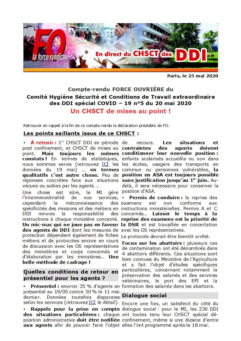 Pour en savoir plus, retrouvez ICI le compte-rendu du CHSCT des DDI du 20 mai 2020.