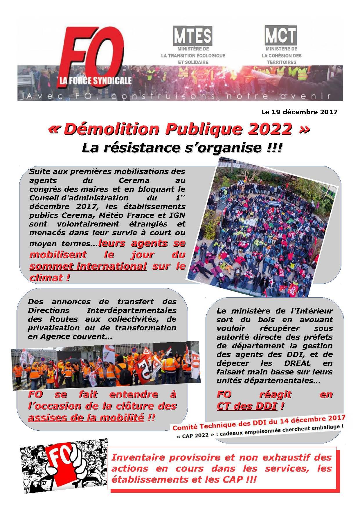 Face à « Action publique 2022 » : Il faudra résister ou être sacrifié !!