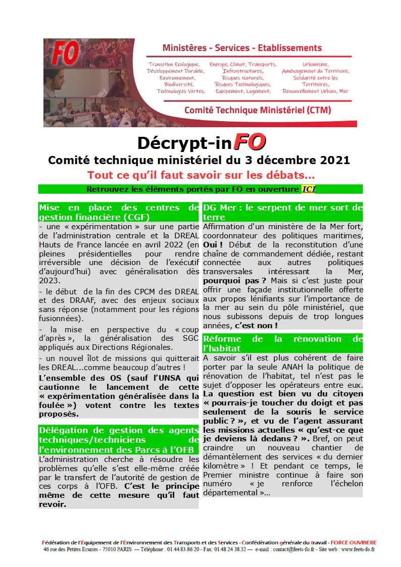 Retrouvez ci-dessous le décrypt-inFO issu des débats du Comité Technique Ministériel du 3 décembre 2021.
