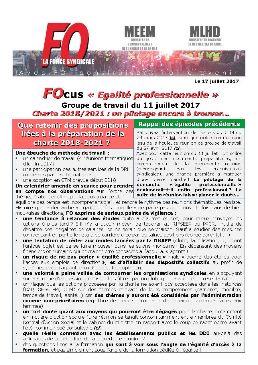 Suite à une réunion houleuse le 27 avril dernier, le groupe de travail « Égalité professionnelle » était re-convoqué le 11 juillet 2017. Avec à la clé : un ordre du jour, des documents préparatoires, un compte-rendu de la précédente réunion…une grande première à marquer d’une pierre blanche dans l’histoire de ce groupe de travail!