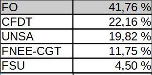 DREAL: FO première organisation avec 44% des voix