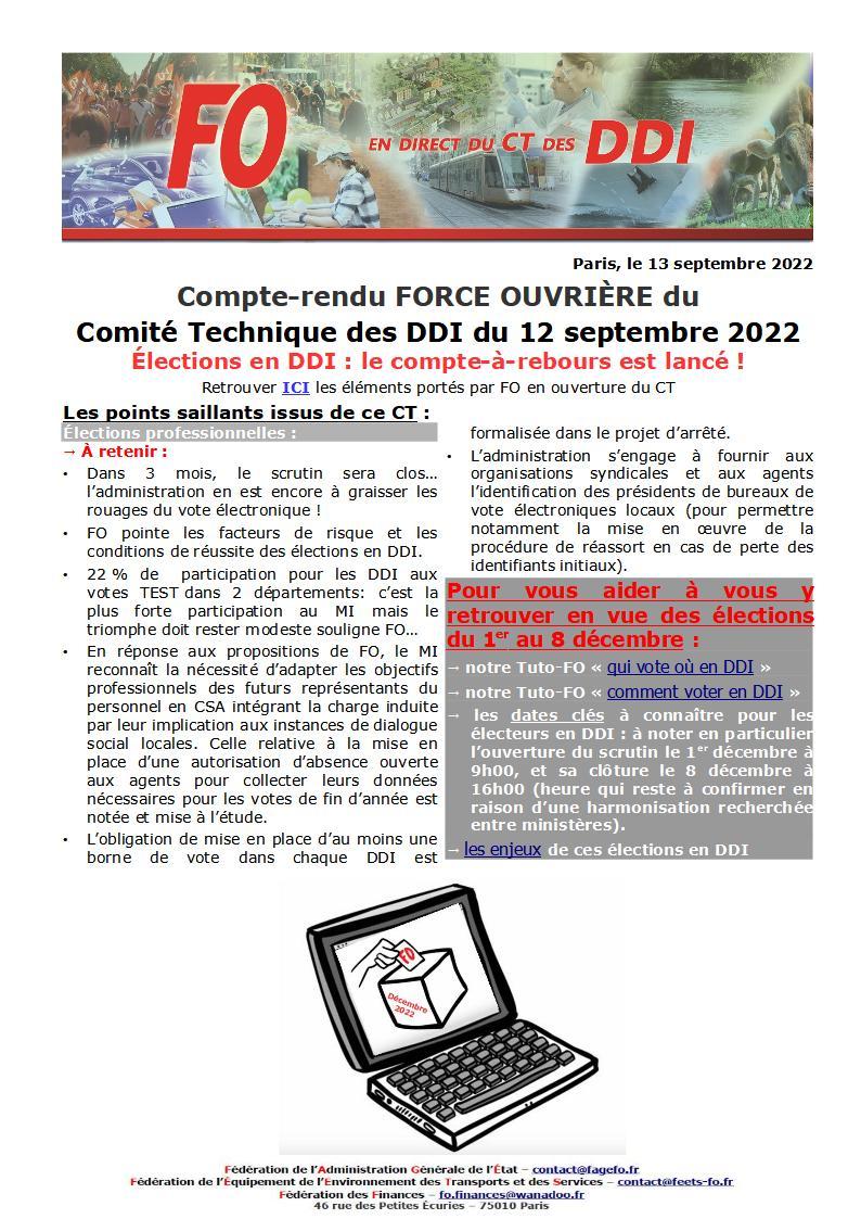 Retrouvez ICI le compte-rendu du Comité Technique des DDI du 12 septembre dédié exclusivement à la préparation des élections professionnelles en DDI…et il y a encore du pain du la planche!