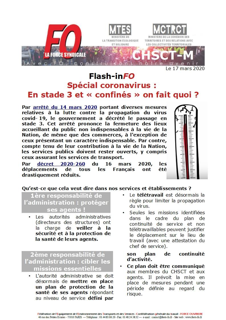 Ce mardi 17 mars a eu lieu un deuxième CHSCT ministériel extraordinaire au sujet du coronavirus (éléments issus du précédent ICI), suite au passage au stade 3 et aux nouvelles dispositions annoncées par le Président de la république et le gouvernement.