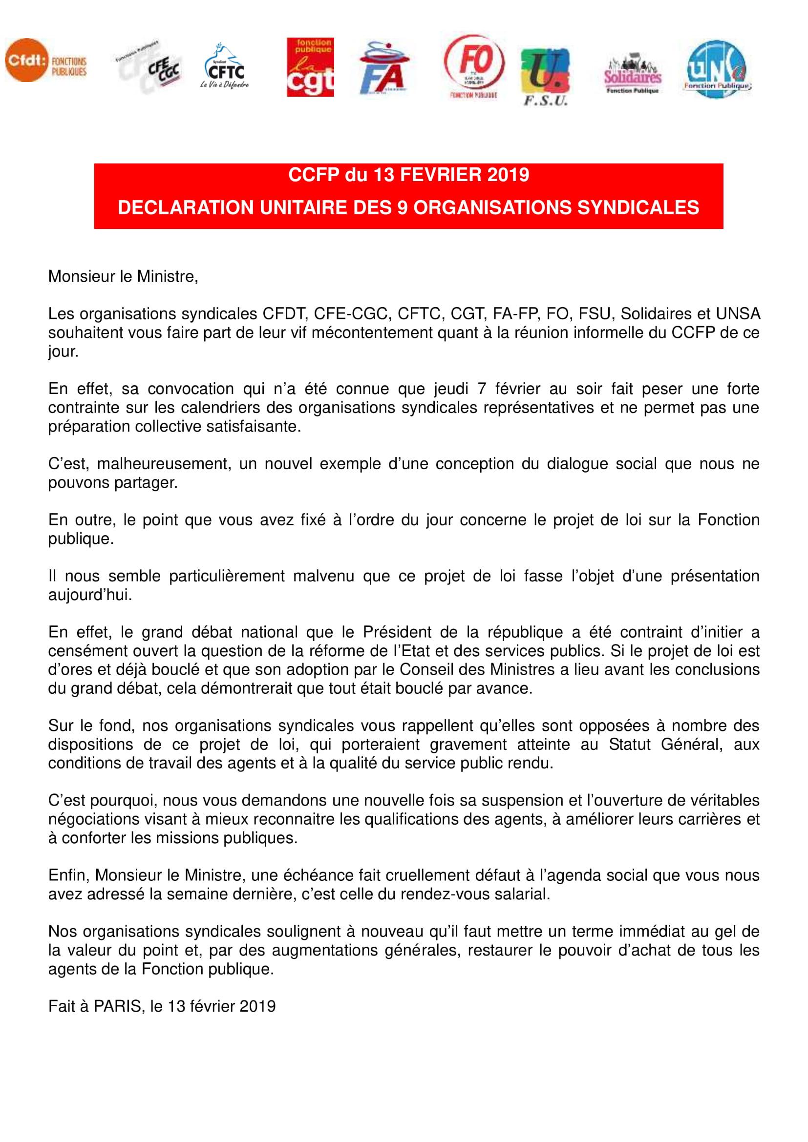 Retrouvez ci-dessous la déclaration commune des 9 OS représentatives dans la Fonction Publique: