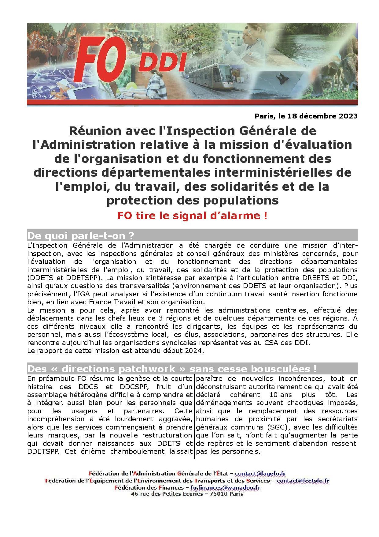 Sur l’ensemble de ces sujets, FO/DDI a porté auprès de la mission ses constats et pistes de mesures correctives.