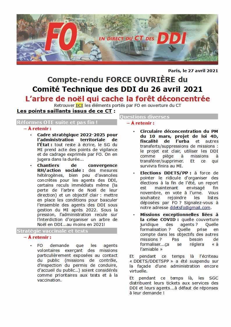 Retrouvez ci-après le compte-rendu du comité technique des DDI du 26 avril 2021.