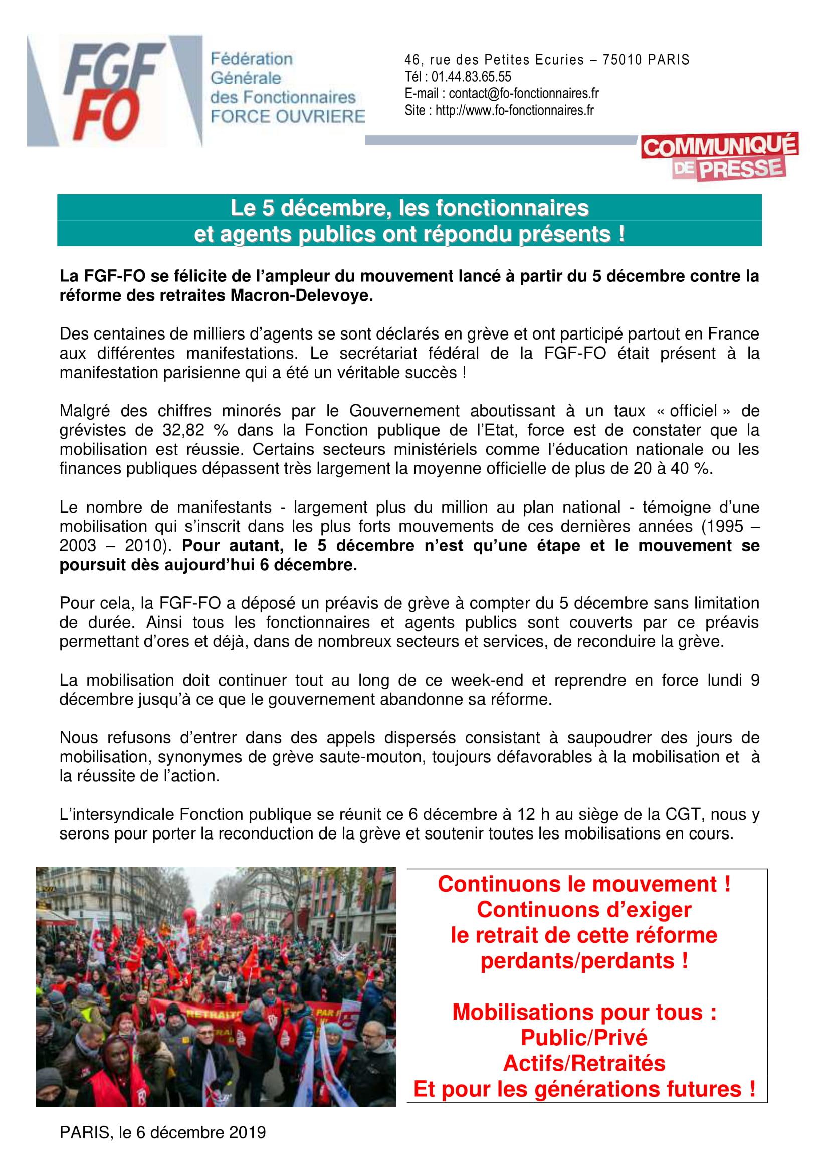 Le 5 décembre, les fonctionnaires et agents publics ont répondu présents: continuons pour gagner !