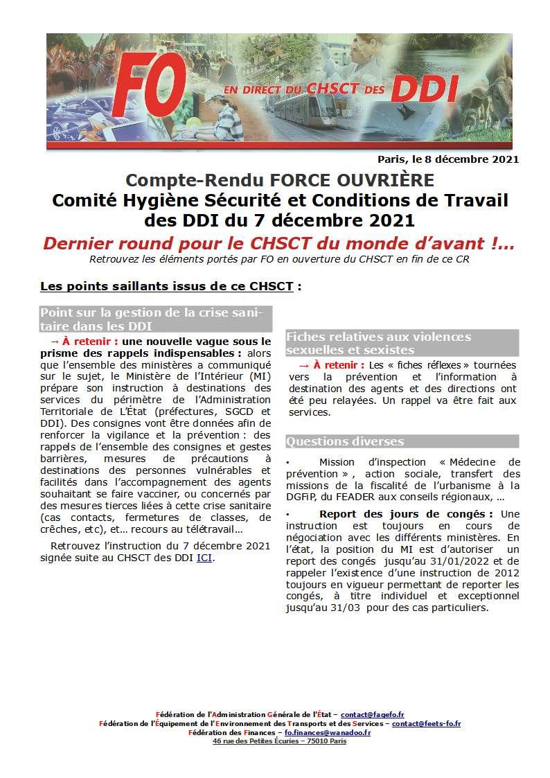 Retrouvez ICI la teneur des débats du CHSCT des DDI du 7 décembre 2021.