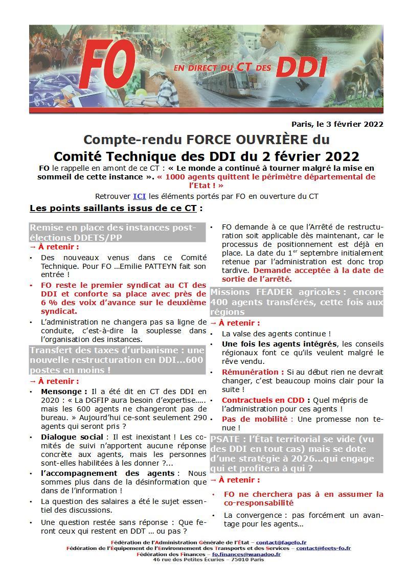 Retrouvez ICI le compte-rendu du CT des DDI du 2 février 2022.