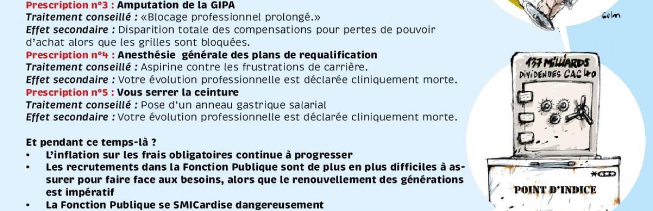 Le gouvernement veut imposer ses « traitements » d’austérité aux agents publics (surgel du point d’indice, blocage des carrières, suppression de la GIPA).