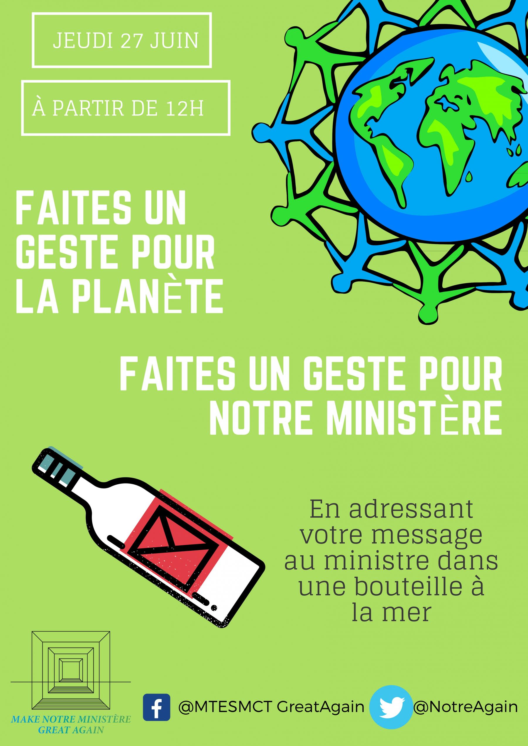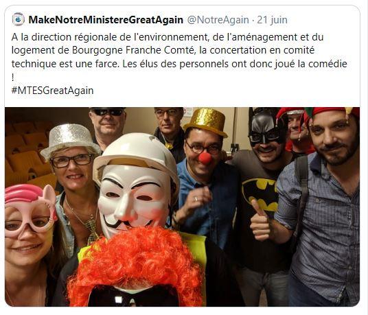 La première décision de ce conseil a été d’appeler les personnels des ministères de l’écologie et de la cohésion des territoires, dans tous les services, établissements publics ou écoles, à Paris comme dans toute la France, à s’inscrire dans l’opération « Make Notre Ministère GREAT Again » du 20 au 27 juin pour sortir la misère et le déclin de nos ministères de l’anonymat!