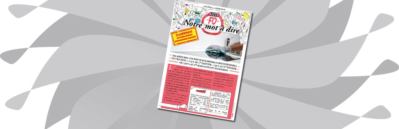 Salaire 2022 : les nouveaux minima conventionnels en vigueur : + 1,6 % au 1er janvier. + 2,6 % au 1er février ou 2,65 % au 1er mars suivant extension ……………………………………………………………………………………….. p.1