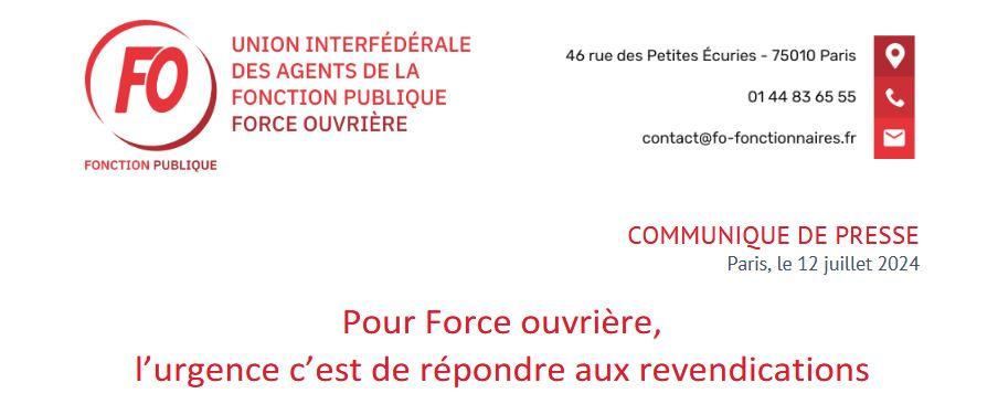 FO Fonction publique continuera de porter ses revendications et attend du futur exécutif qu’il nous reçoive en urgence !
