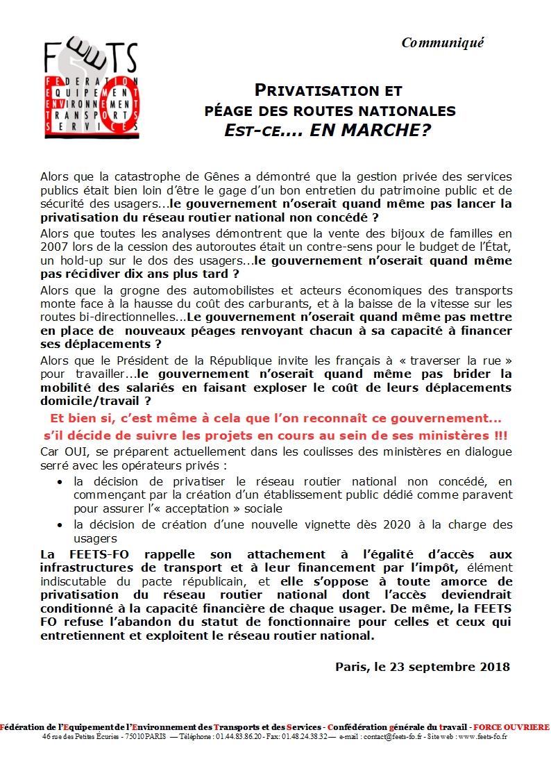Privatisation et péage des routes nationales Est-ce…. EN MARCHE ?