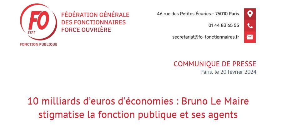 Pour la FGF-FO, ces annonces, qui programment une année blanche sur les salaires en 2024, sont