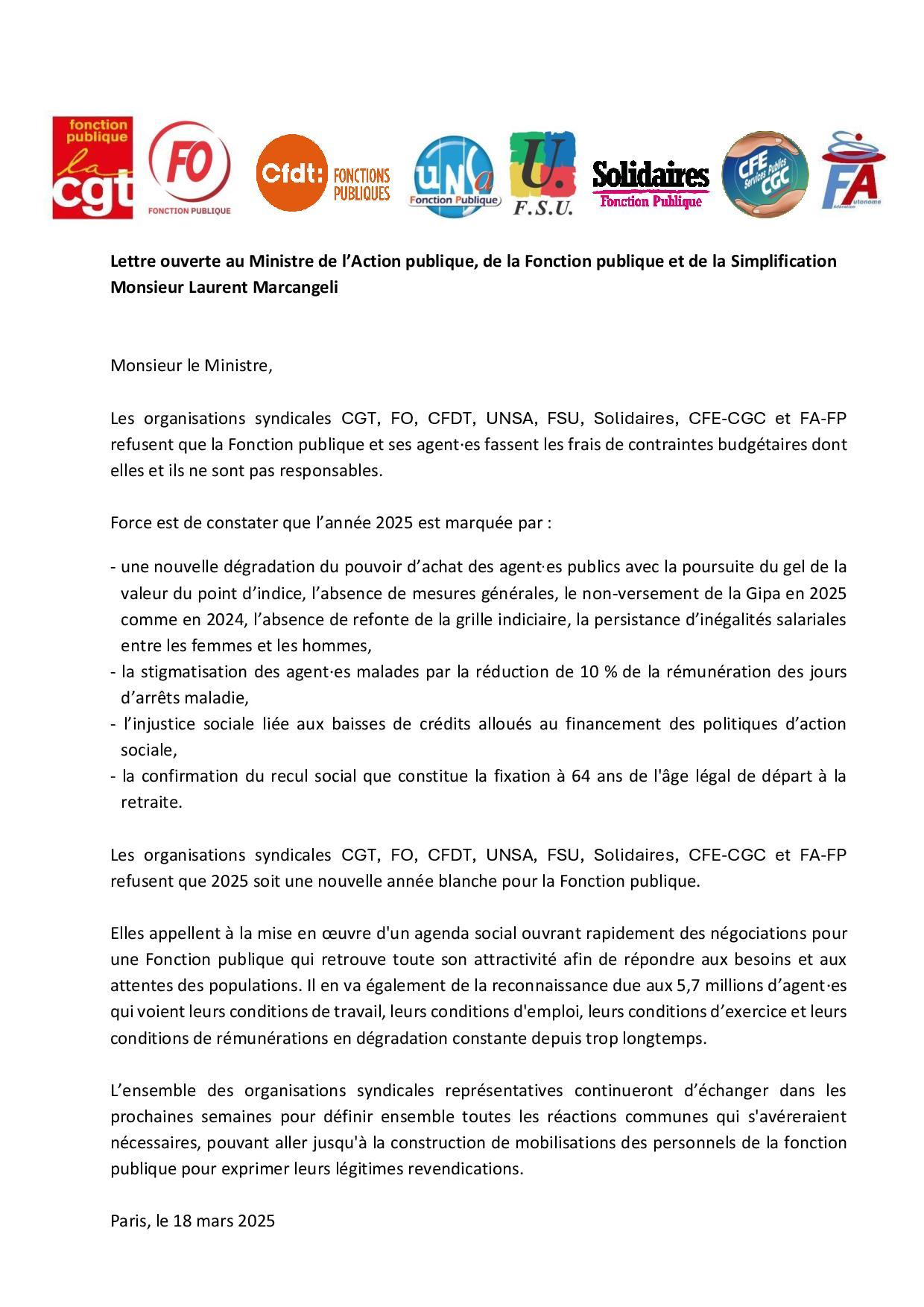 Agenda social de la Fonction Publique: ne pas mettre la poussière sous le tapis! Communiqué 20 mars 2025 Malvina Caubère