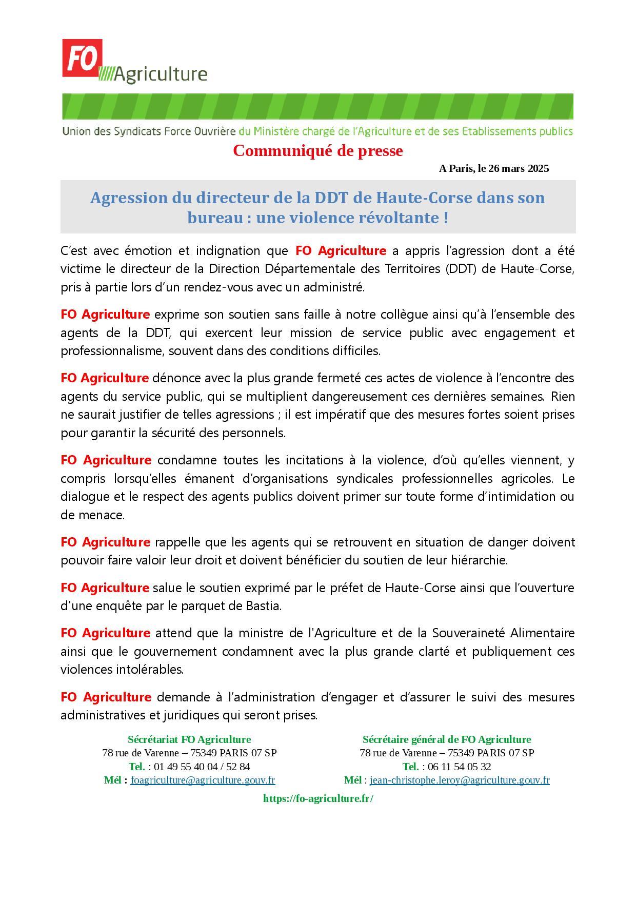Agression du directeur de la DDT de Haute-Corse dans son bureau : une violence révoltante! Communiqué 27 mars 2025 Malvina Caubère Cliquez ICI