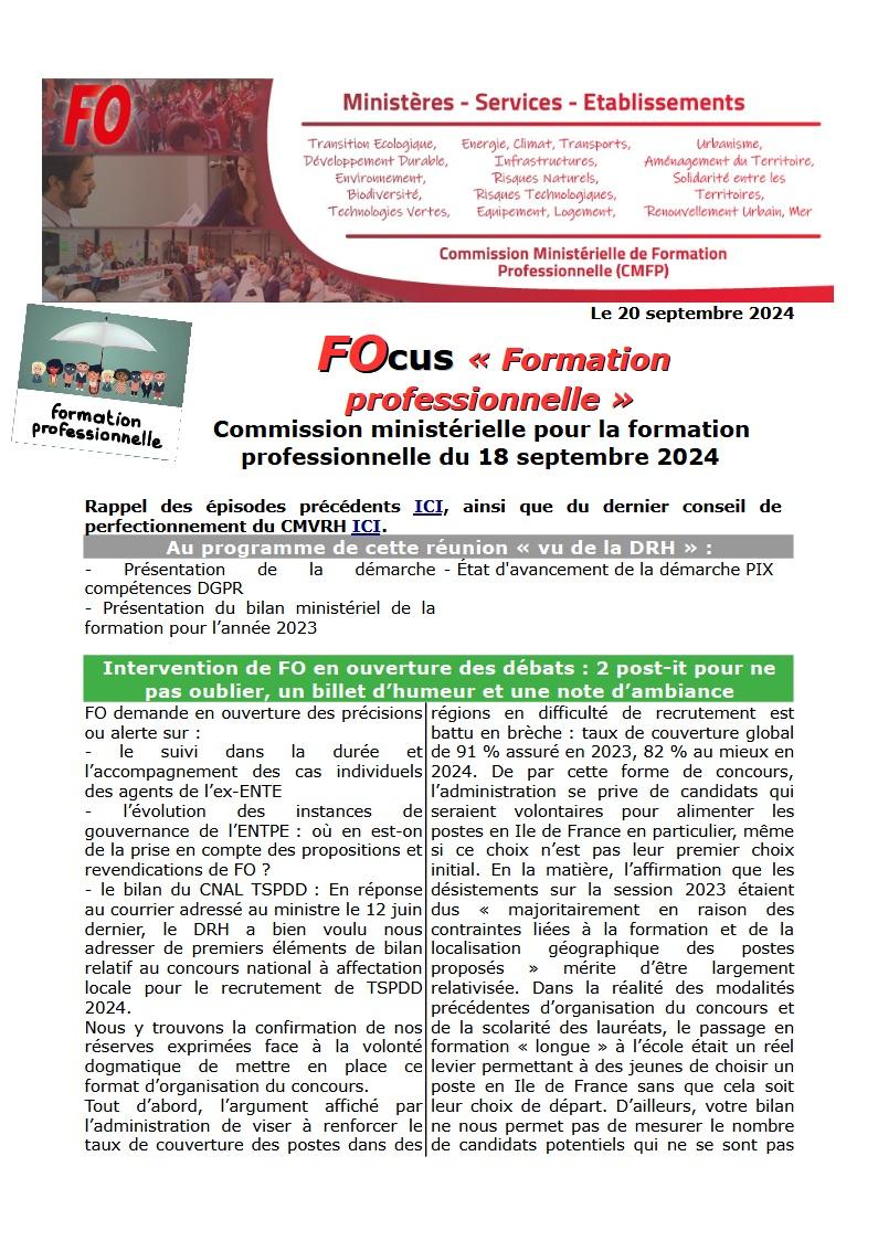 Retrouvez ci-dessous le compte-rendu de la Commission Ministérielle de Formation Professionnelle du 18 septembre 2024.