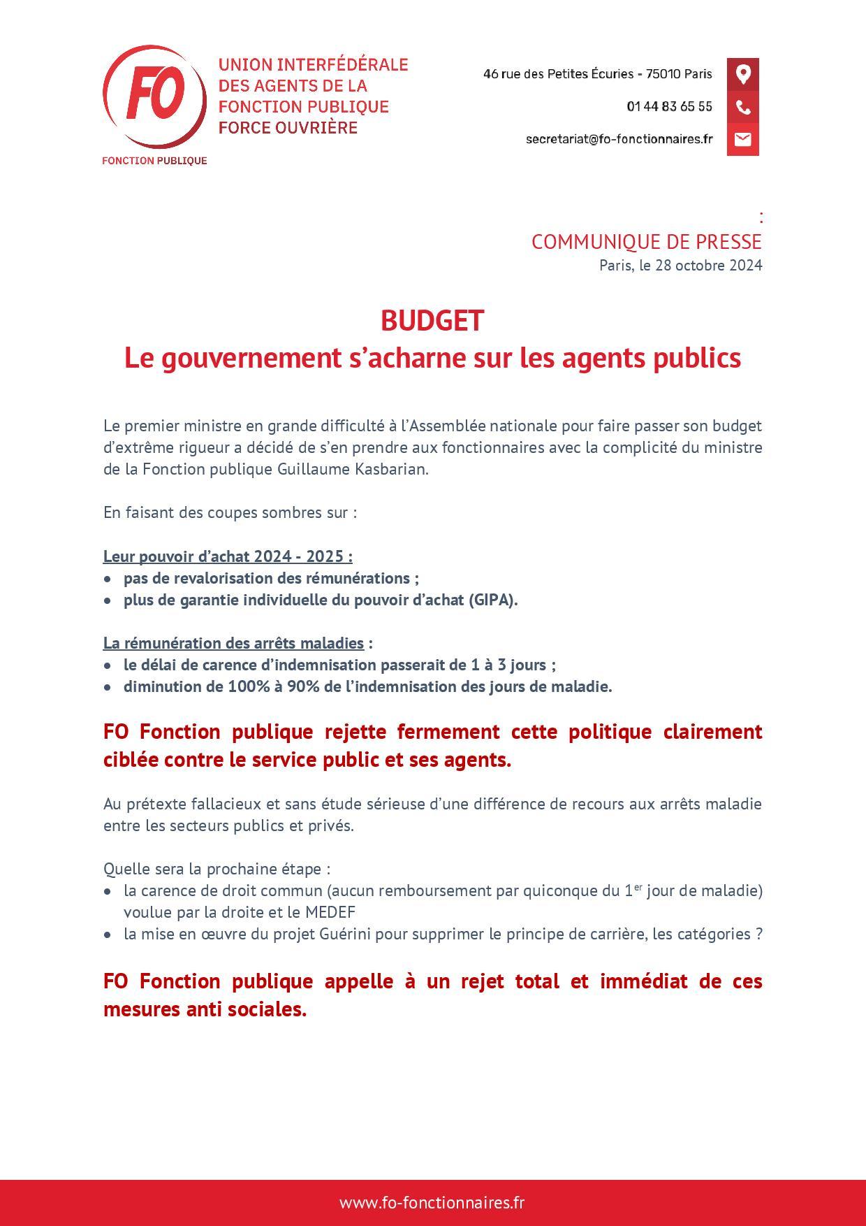 BUDGET Le gouvernement s’acharne sur les agents publics
