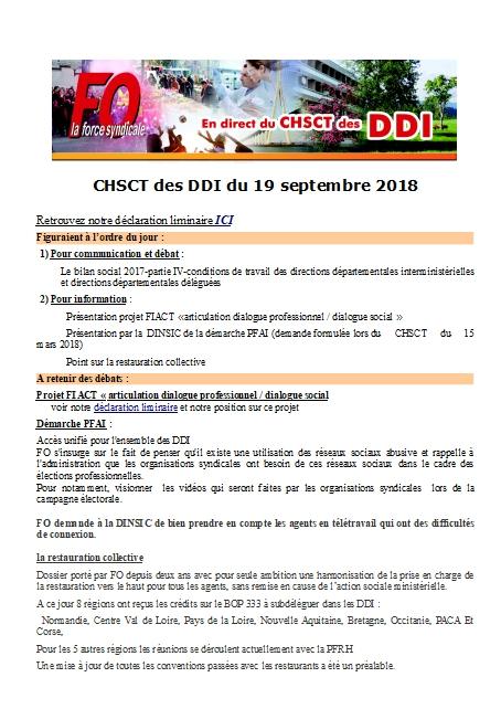 CHSCT des DDI du 19 septembre 2018: le compte-rendu de FO CR Réunion 25 septembre 2018 Malvina Caubère Cliquez ICI Document lié CR-FO-CHSCT-des-DDI-du-19-septembre-2018-1 PDF — 432 Ko