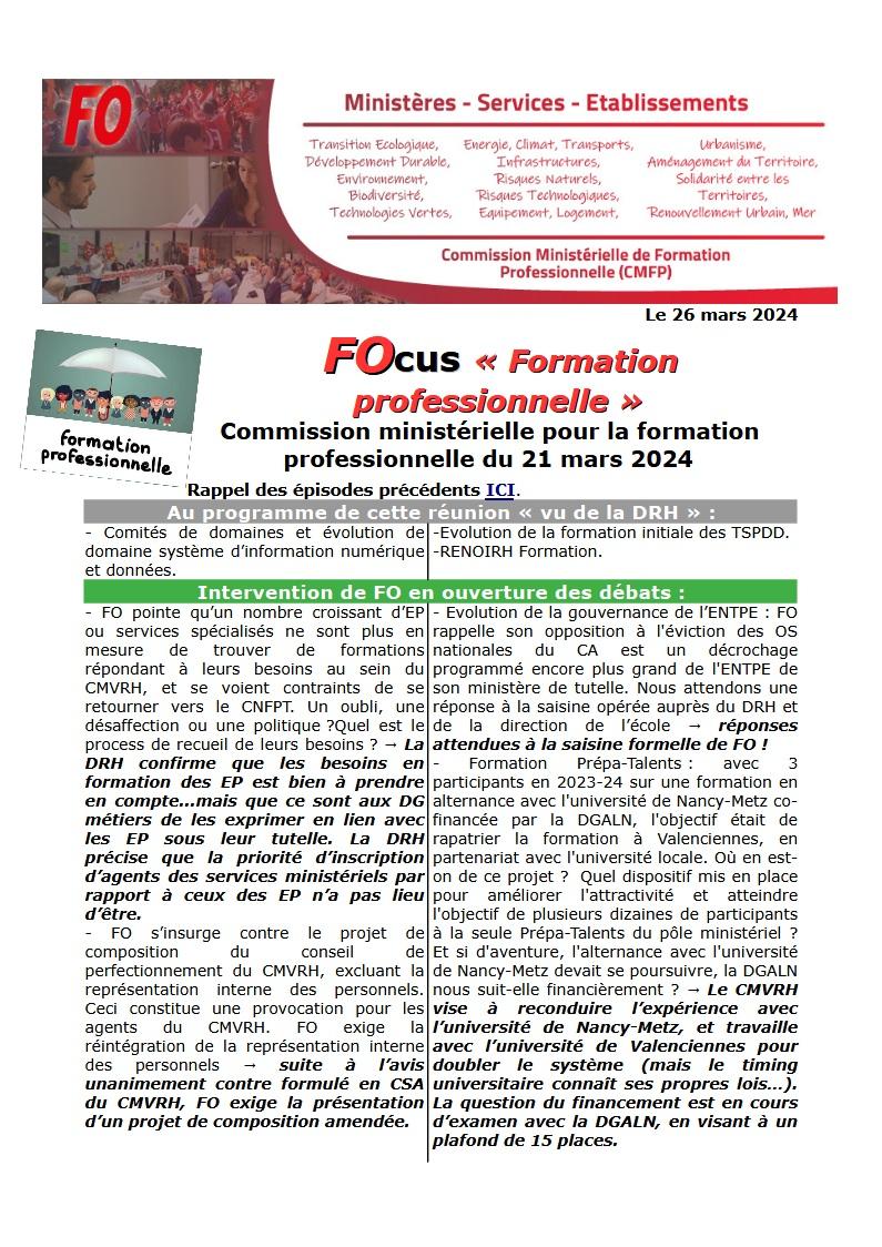 Retrouvez ci-après le compte-rendu issu des débats de la Commission Ministérielle pour la Formation Professionnelle du 21 mars 2024.