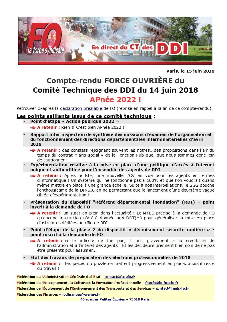 CT des DDI du 14 juin 2018: APnée 2022 !! CR Réunion 15 juin 2018 Malvina Caubère Pour en savoir plus, cliquez ICI Document lié LJ_18024-CR-FO-du-CT_DDI-du-14-juin-2018-1 PDF — 5 Mo