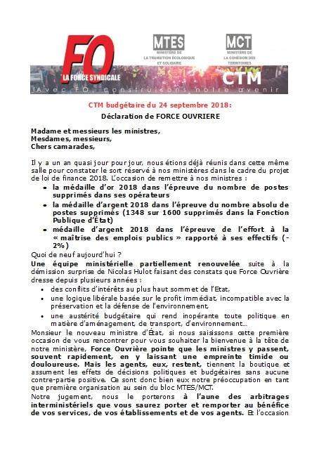 CTM budgétaire du 24 septembre 2018: la déclaration préalable de FO CR Réunion 24 septembre 2018 Malvina Caubère Cliquez ICI