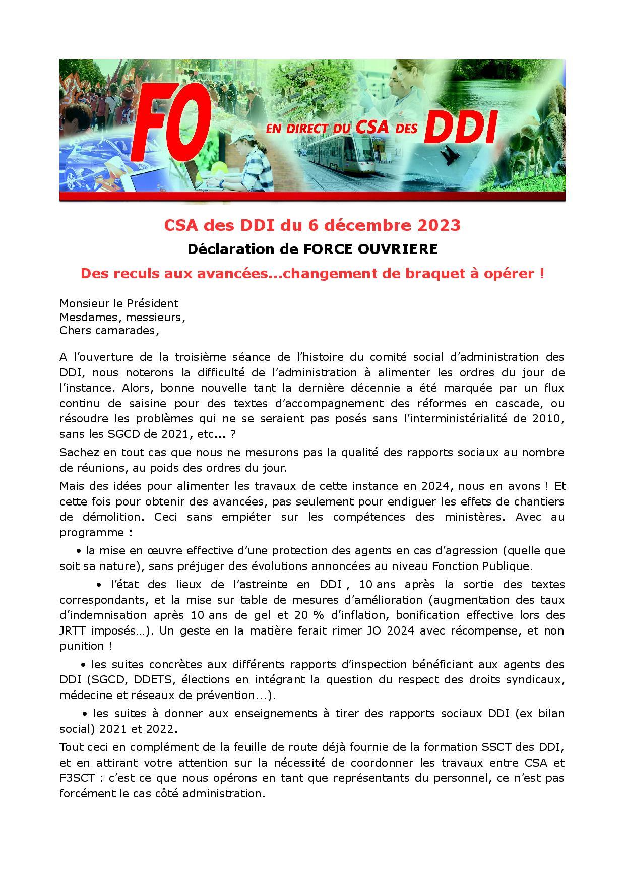 Retrouvez ci-dessous la déclaration préalable de FO en ouverture du CSA des DDI du 6 décembre 2023, et « en live » ICI.