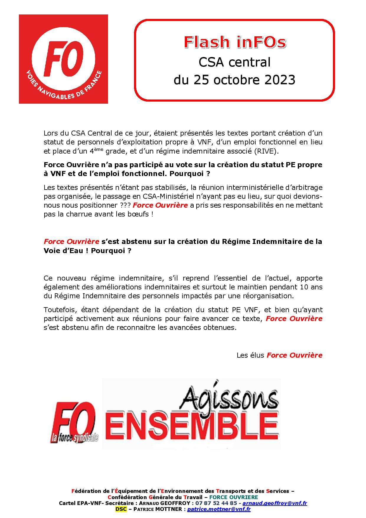 Flash inFO CSA de VNF du 25 octobre 2023