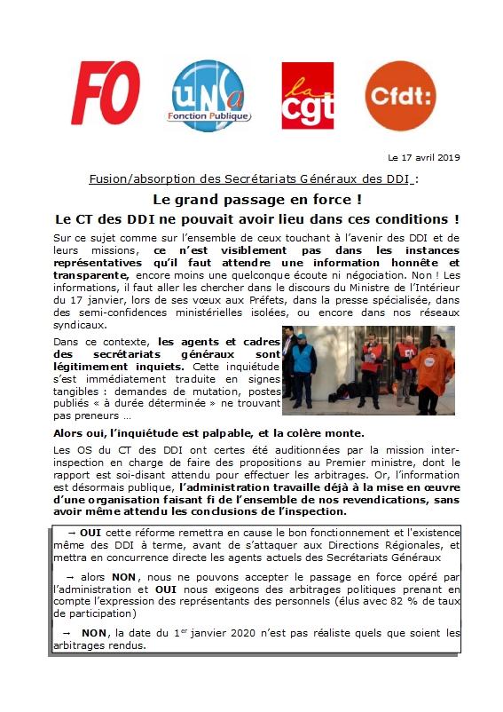 Retrouvez ICI le communiqué commun unitaire issu de la journée d’action du 17 avril 2019 auprès du Secrétaire général du gourvernement, des directeurs des DDT(M) et du ministre de l’Agriculture.
