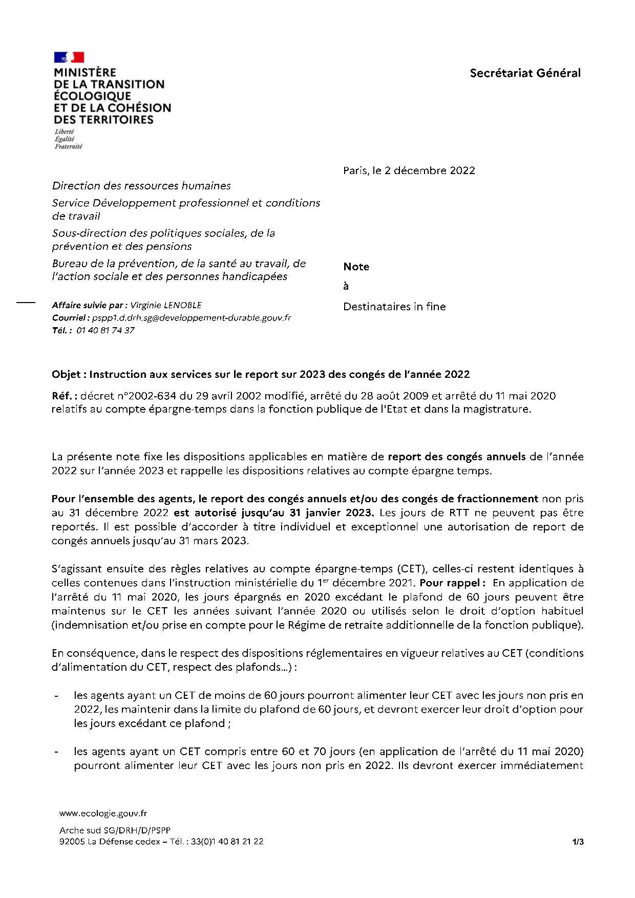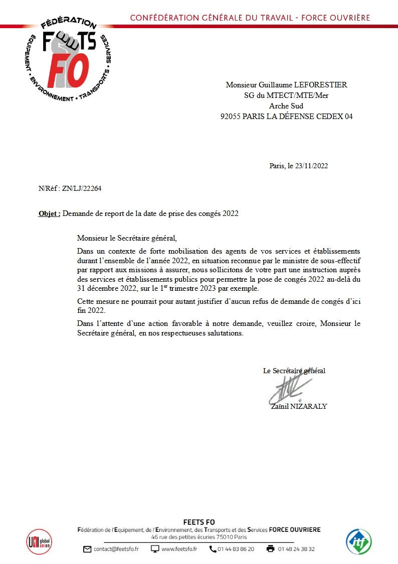 Gestion des congés de fin d’année: report possible jusqu’à fin janvier 2023 suite à l’intervention de FO Tract 5 décembre 2022 Malvina Caubère
