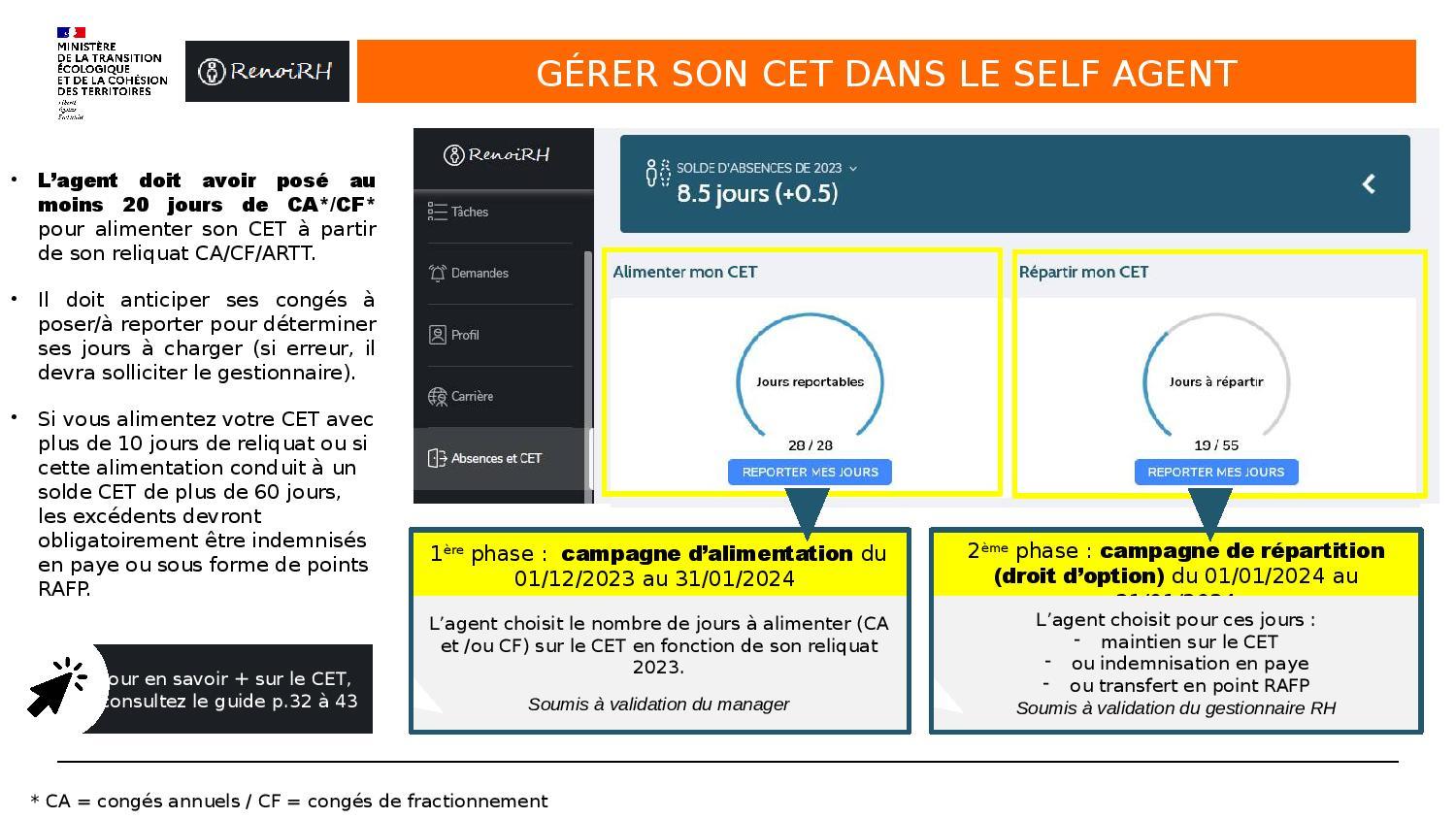 Pour ce qui est de la gestion des Compte Epargne Temps (CET), les consignes précédentes sont prolongées (instruction 2021/2022 ICI, 2022/2023 ICI).