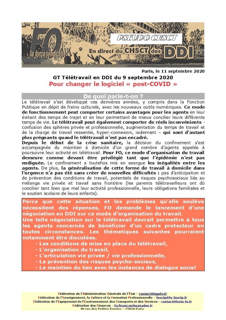 Parce que la situation issue de la crise que nous traversons et les problèmes qu’elle soulève en matière de télétravail nécessitent des réponses, FO demande le lancement d’une négociation en DDI sur ce mode d’organisation du travail.