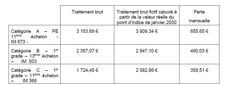 Pour les fonctionnaires, la perte est énorme, comme le montre les exemples du tableau ci-dessous :