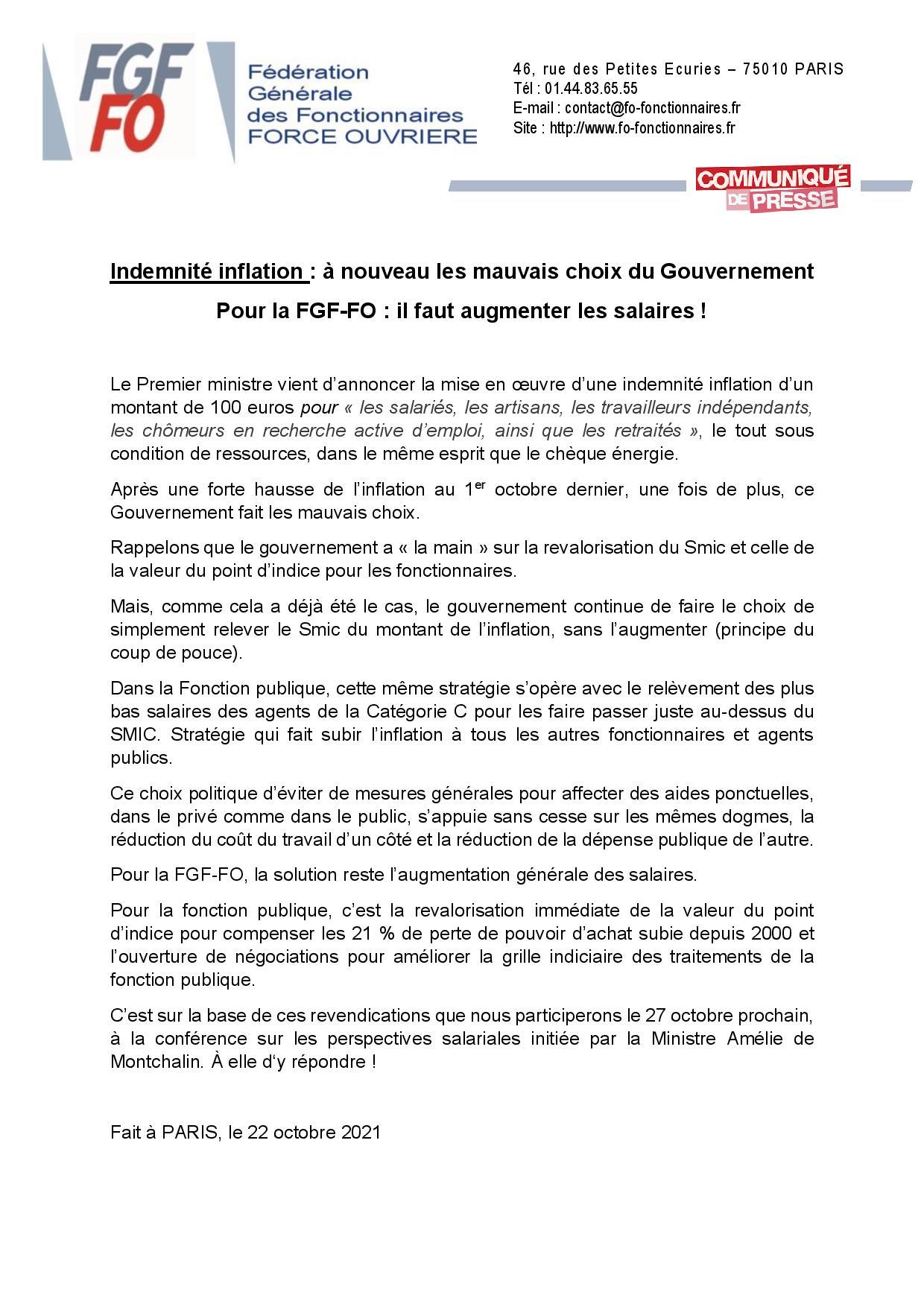 Indemnité inflation : à nouveau les mauvais choix du Gouvernement