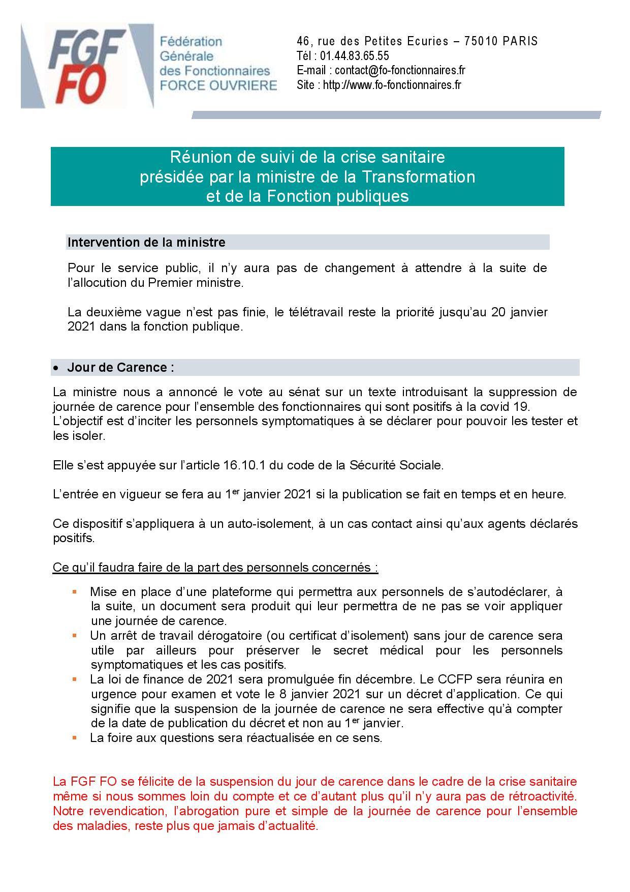 Jour de carence, congés 2020, télétravail: au menu de la rencontre avec la ministre de la Transformation et de la Fonction publiques CR Réunion 14 décembre 2020 Malvina Caubère