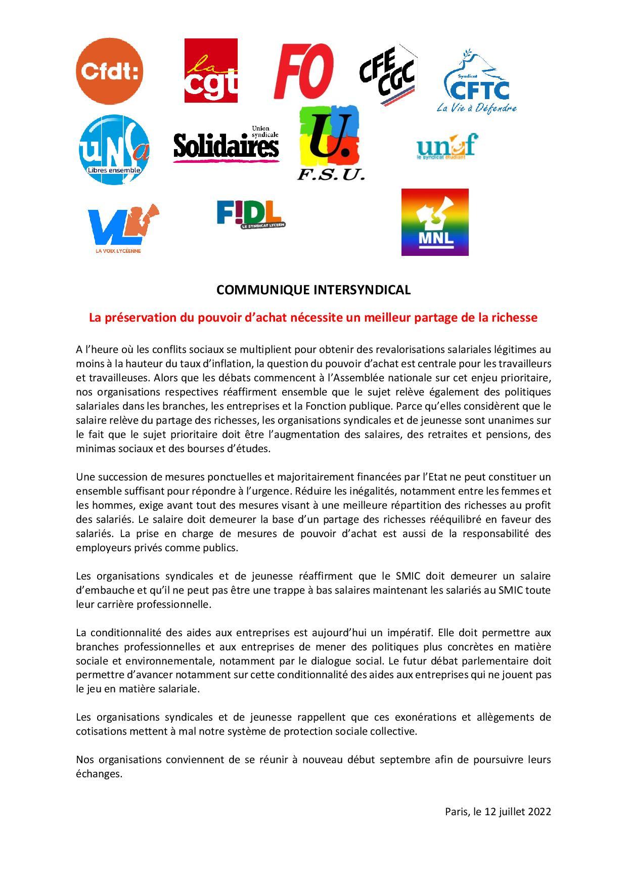 La préservation du pouvoir d’achat nécessite un meilleur partage de la richesse. Communiqué 13 juillet 2022 Malvina Caubère