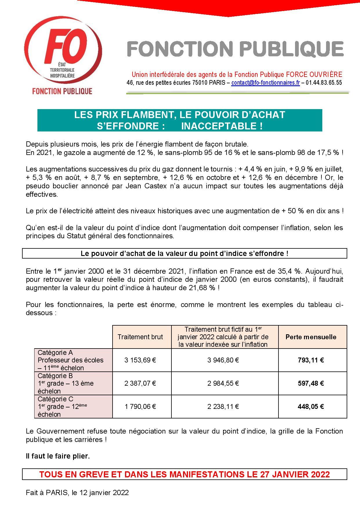 LES PRIX FLAMBENT, LE POUVOIR D’ACHAT S’EFFONDRE : INACCEPTABLE ! Communiqué 12 janvier 2022 Malvina Caubère