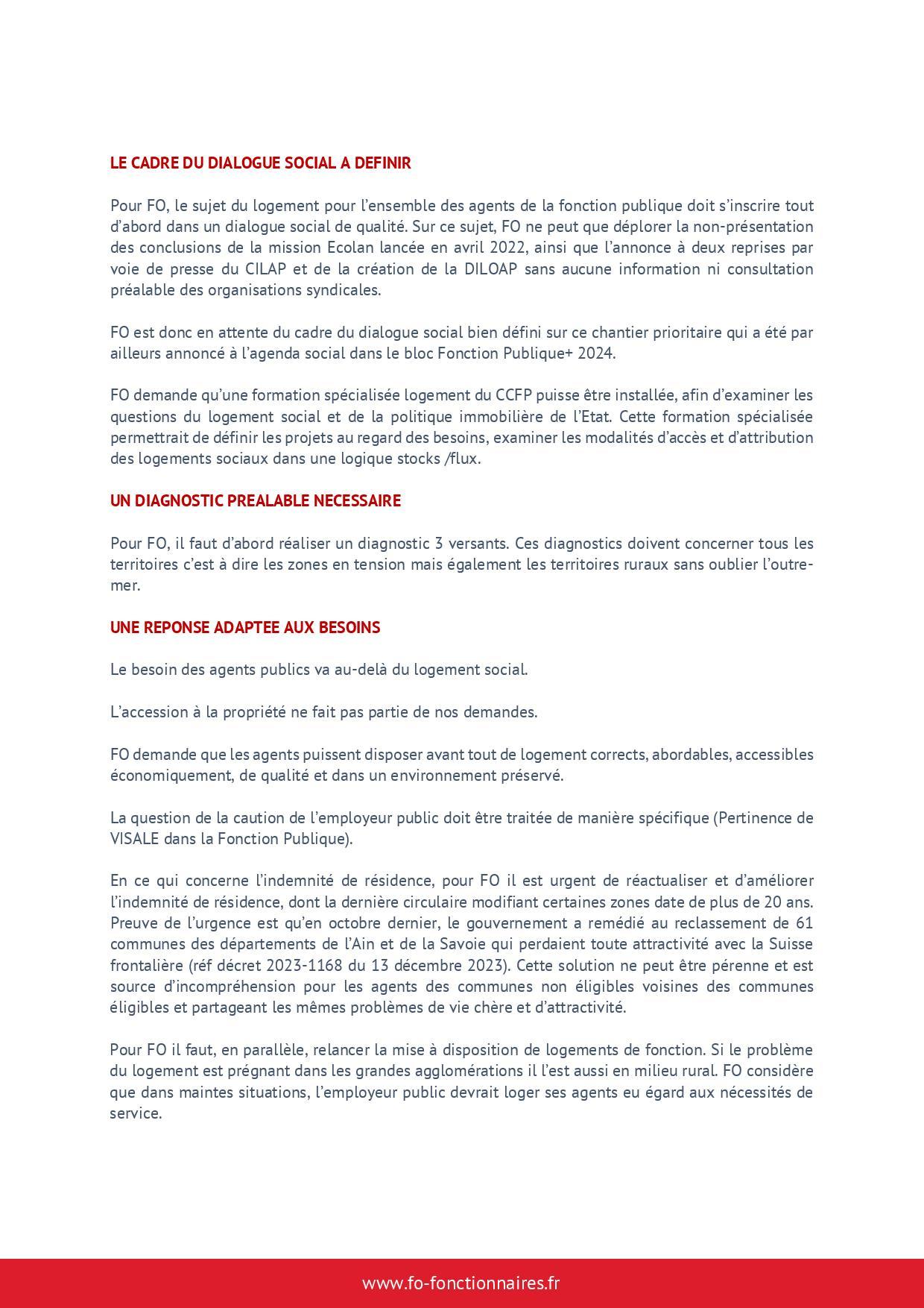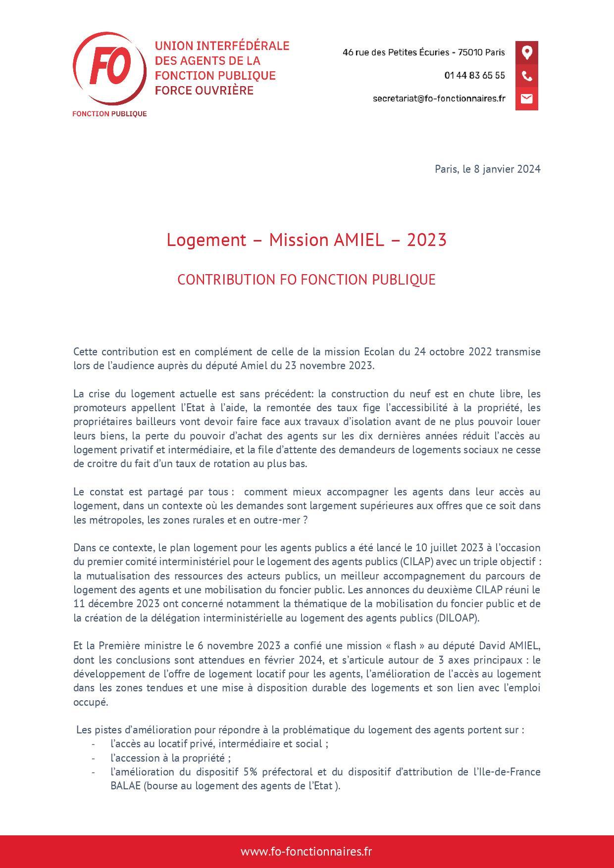 Logement des agents publics: FO contribue à la mission du député AMIEL Communiqué 8 janvier 2024 Malvina Caubère