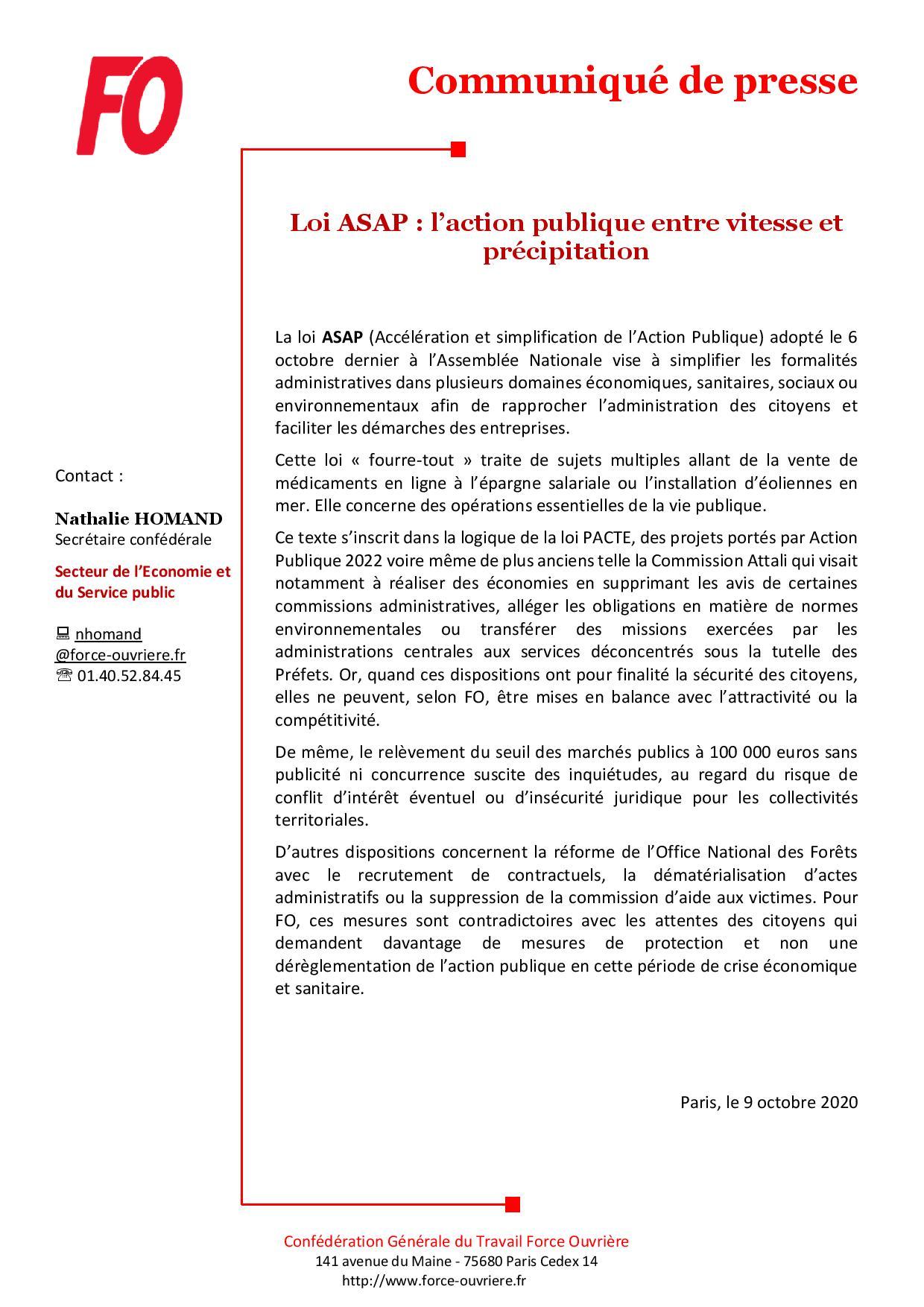 Loi ASAP : l’action publique entre vitesse et précipitation Communiqué 9 octobre 2020 Malvina Caubère Cliquez ICI