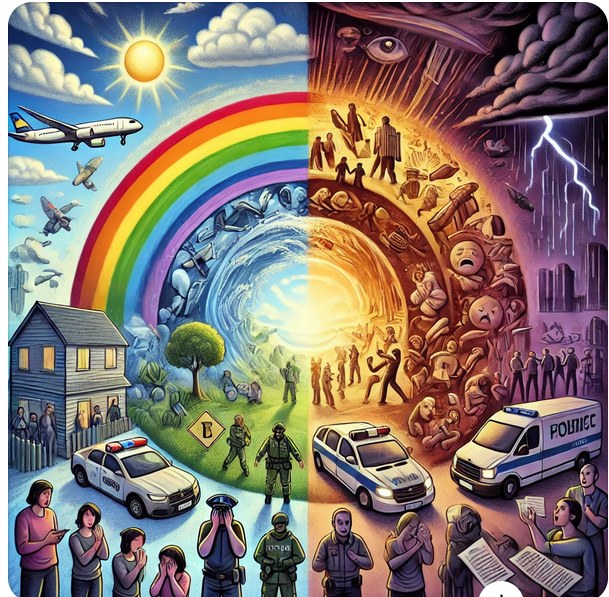 Vient alors le VERT, le vert de l’environnement, de la biodiversité, mais aussi le vert de la PEUR. Ce vert qui tourne au vert caca d’oie en ce moment en étant la cible clairement affichée de nombreux élus, usagers, … Pour preuve : la vidéo d’étudiants d’un lycée agricole riant d’une mise en scène du meurtre et de la dissimulation du corps d’un agent de l’OFB puis l’agression en plein entretien prévu d’un directeur en Corse.