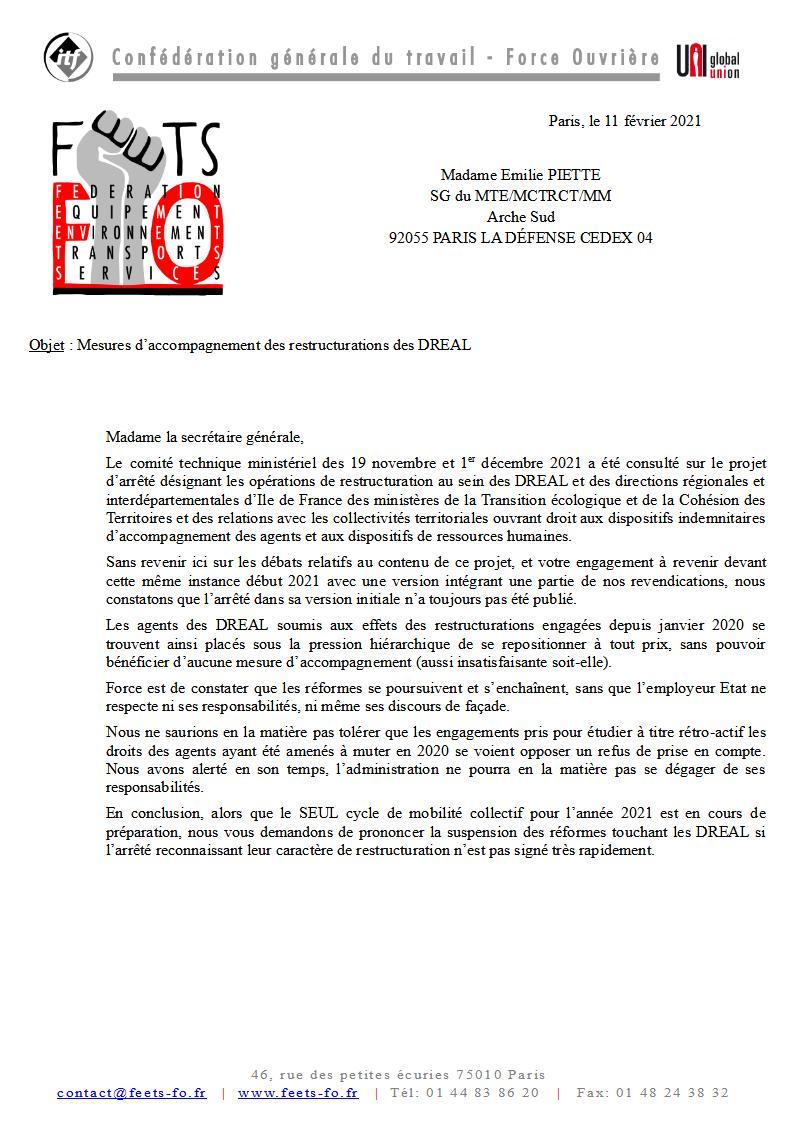 Retrouvez ICI le courrier adressé à la SG du MTE.